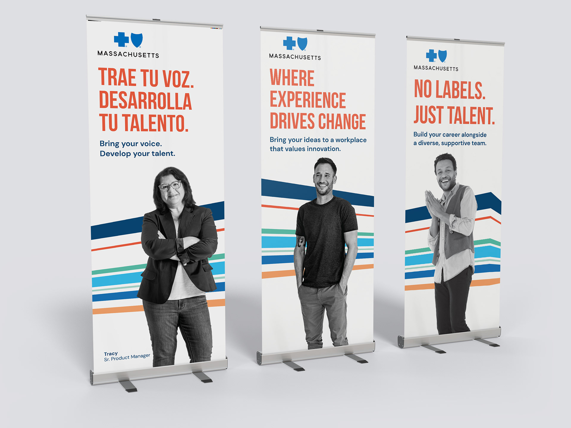 A series of visually striking roll-up banners for the company’s Talent & Acquisition team, designed for use at trade shows and recruitment events. These banners feature a modern, dynamic aesthetic with a fresh color palette and clean typography, effectively communicating the company’s innovative culture and appeal to top talent. The designs were crafted to capture attention from a distance, reflect the brand’s forward-thinking identity, and support a strong, cohesive recruitment strategy.